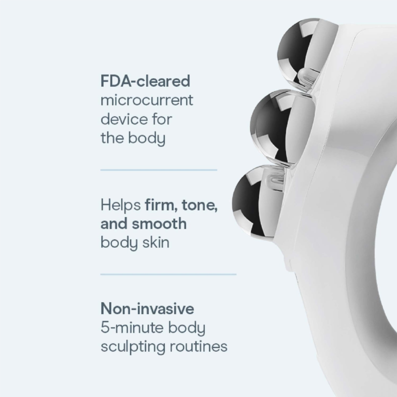 What Else You Need to Know:Elevate your confidence with the first ever FDA-Cleared at-home microcurrent body toning device. Gentle microcurrent visibly smooths dimples while firming and toning the look of loose skin on the arms, abs, legs, and booty in just five minutes per treatment zone.