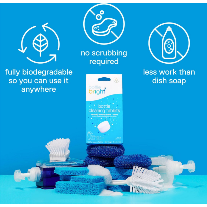 Keep your water bottle fresh and clean with the HydraPak Bottle Bright All-Natural Cleaning Tablet 12-Pack. These tablets clean the inside of your bottle without leaving a residue or taste, and are biodegradable once discarded. The tablets are individually wrapped and work on nearly any surface including stainless steel, TPU, glass, porcelain and silicone. 12-pack of cleaning tablets keep your water bottle clean and clear