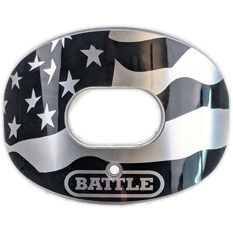 Stay safe on the field with the Battle Oxygen Chrome American Flag 2.0 Mouthguard. The advanced composite material provides durability, and the patented design provides breathability. The absorber shield softens impact and the American flag design adds a patriotic look. Made from advanced composite material for durability