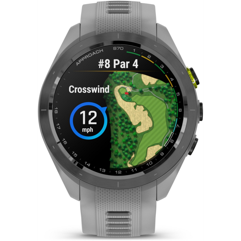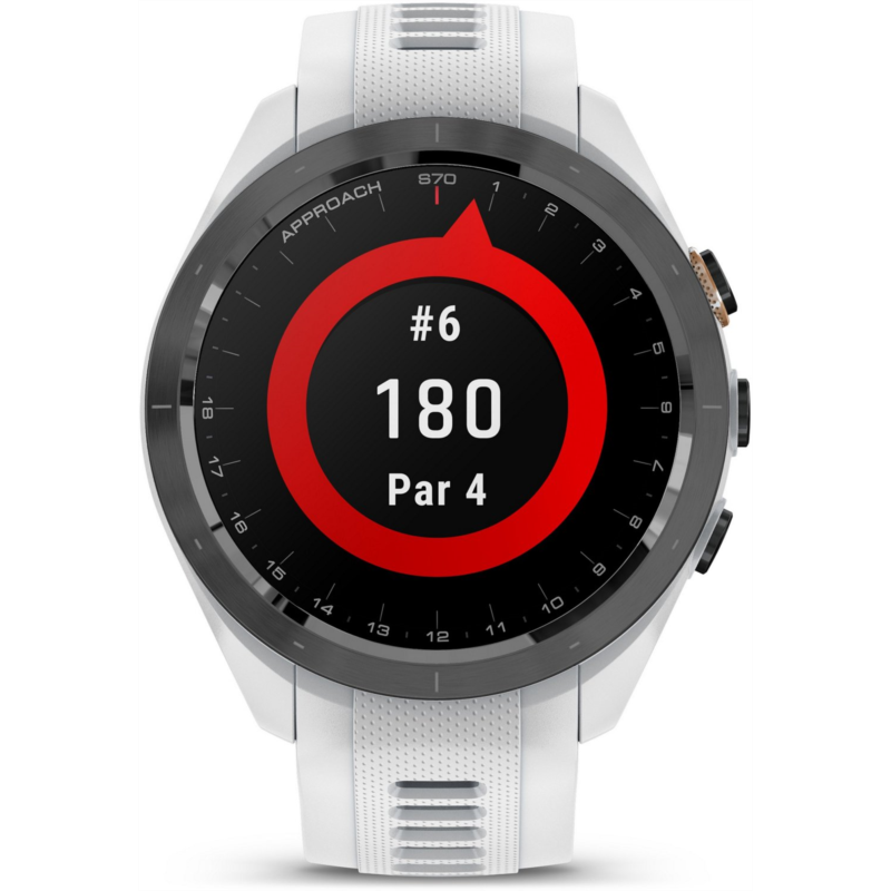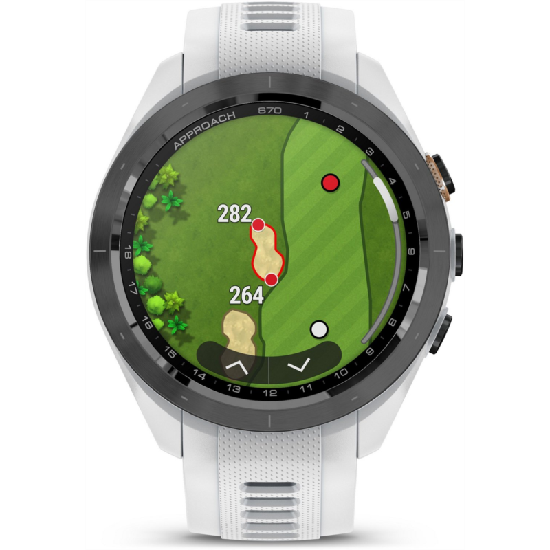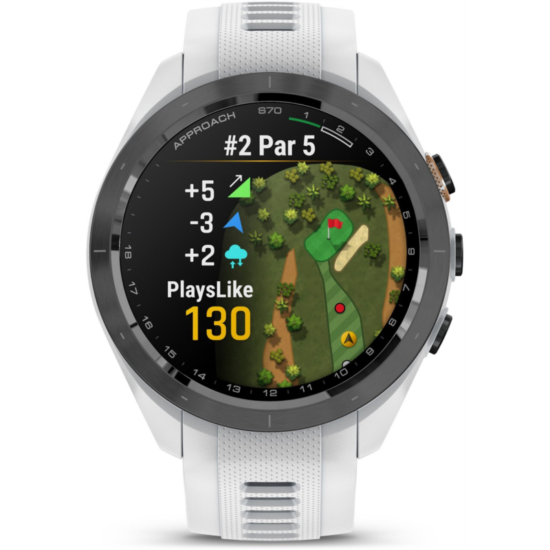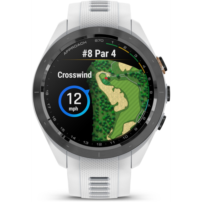 Play smarter using the Garmin Approach S70 42 mm Golf GPS Watch. Packed with tons of tools and features designed to help golfers play easier and better, this watch allows you to take your game to the next level. It''s pre-loaded with 43,000+ golf courses to give you vital data, such as potential hazards, slope information and distance measurements. The watch can also give you club suggestions based on performance and wind metrics, and it can keep track and keep score as you play. In addition to golf tools, the watch also has a whole array of other health and fitness capabilities to support your overall well-being day in and day out. Water-resistant. Ceramic bezel and silicone wrist strap. GPS sensor complete with 43,000+ preloaded golf courses from around the world to help enhance your game