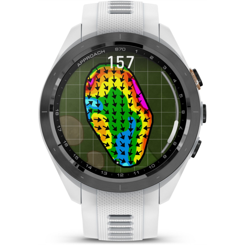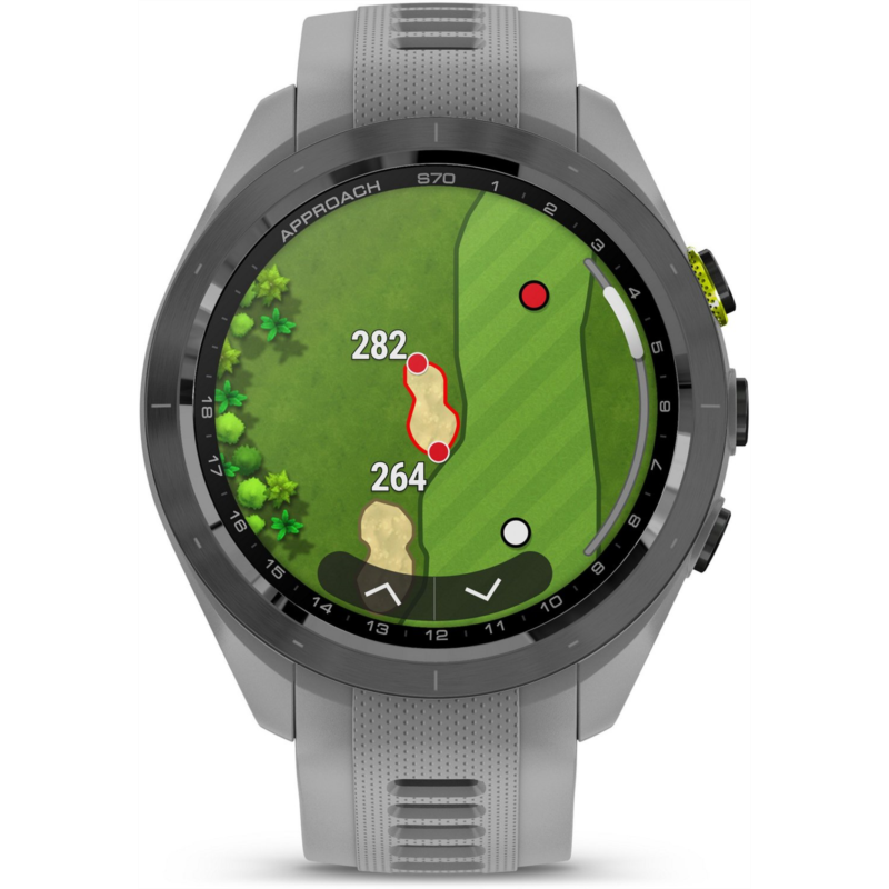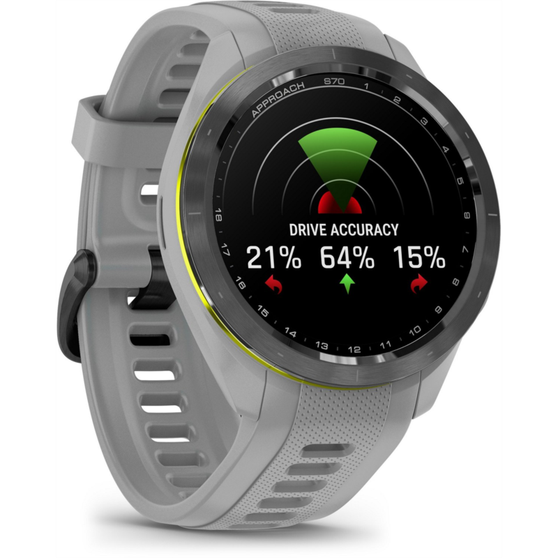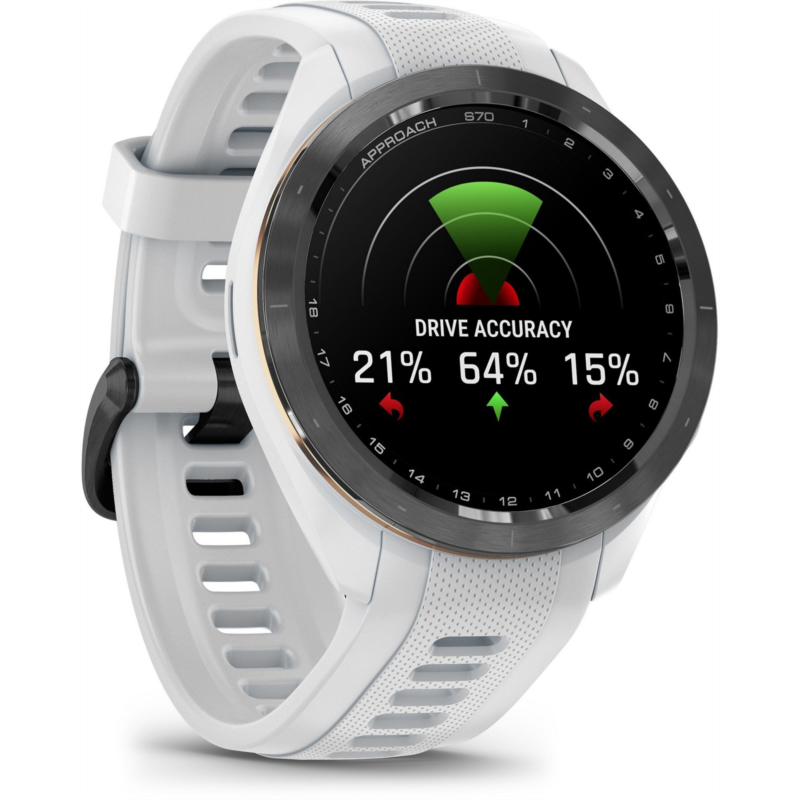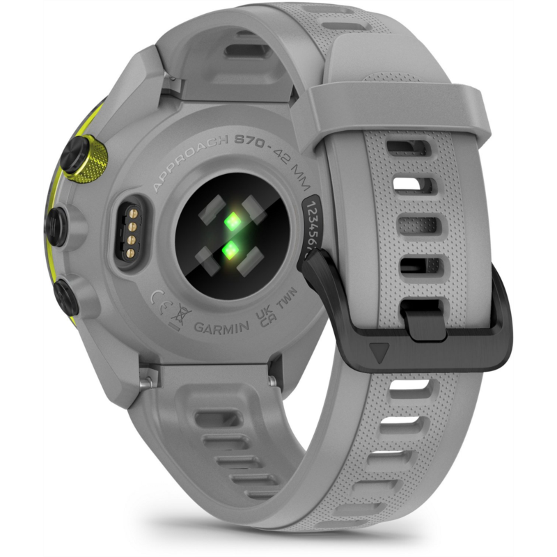 Play smarter using the Garmin Approach S70 42 mm Golf GPS Watch. Packed with tons of tools and features designed to help golfers play easier and better, this watch allows you to take your game to the next level. It''s pre-loaded with 43,000+ golf courses to give you vital data, such as potential hazards, slope information and distance measurements. The watch can also give you club suggestions based on performance and wind metrics, and it can keep track and keep score as you play. In addition to golf tools, the watch also has a whole array of other health and fitness capabilities to support your overall well-being day in and day out. Water-resistant. Ceramic bezel and silicone wrist strap. GPS sensor complete with 43,000+ preloaded golf courses from around the world to help enhance your game