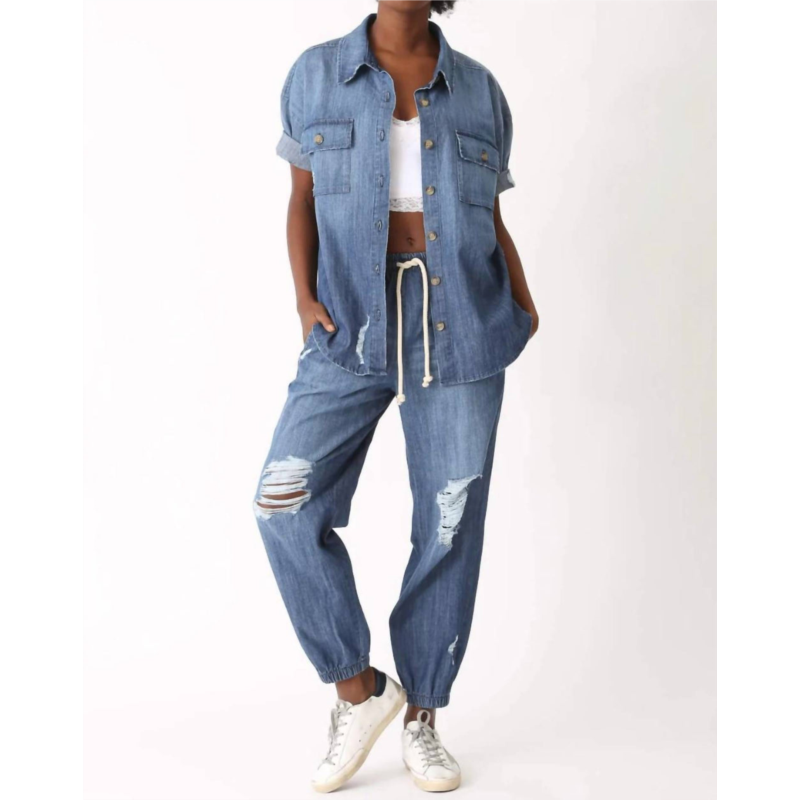 Electric & Rose camero short sleeve top in denim