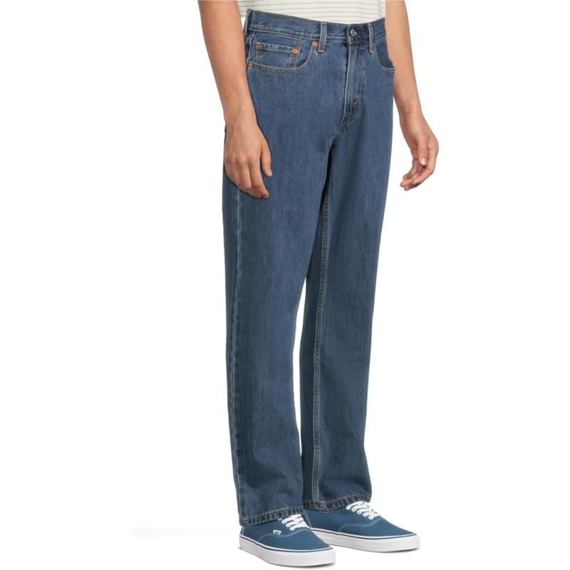 - Comfort and style come easy with the Levi''s Mens 550 Relaxed Fit jeans. It''s cut with a relaxed fit through the hip and thigh, and tapers slightly below the knee.