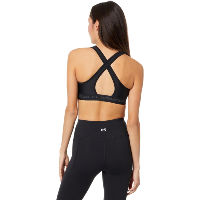 - Under Armour Cross-Back Mid Bra delivers strategic support, tailored for medium-support activities like cycling, weight training & boxing. Soft, quick-drying cups provide extra structure & coverage with perforations for added breathability. Removable cups have helpful R & L arrows to easily put back in. Crossover straps with updated keyhole detail for easier on/off. Updated interior construction helps keep pads in place-during wear & wash. Elastic band feels super-smooth & soft. Available in five color options.