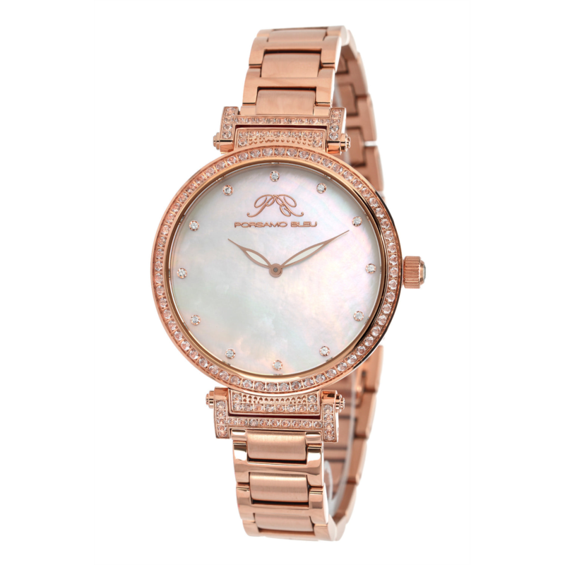 Porsamo Bleu Chantal Ladies'' Watch With Stainless Steel Case And Bracelet, Mother Of Pearl Dial With White Topaz Gemstones; Rose Tone