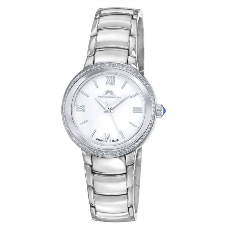 Porsamo Bleu Luna Ladies'' Watch With Topaz Gemstone Inlaid Stainless Steel Bezel; Enamel Dial; Silver Tone