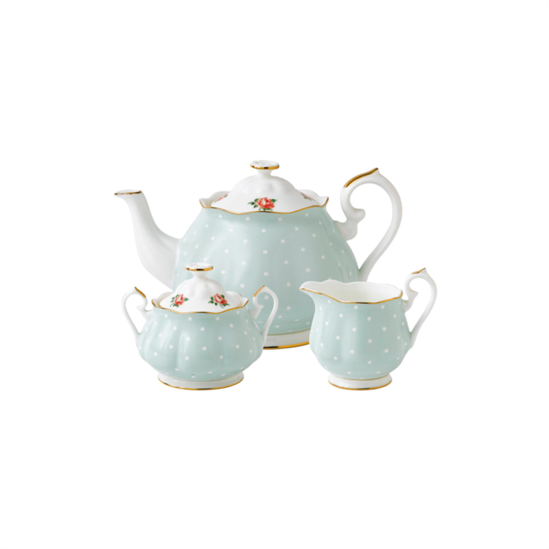 [US] Royal Albert polka rose teapot sugar cream 3 piece set
