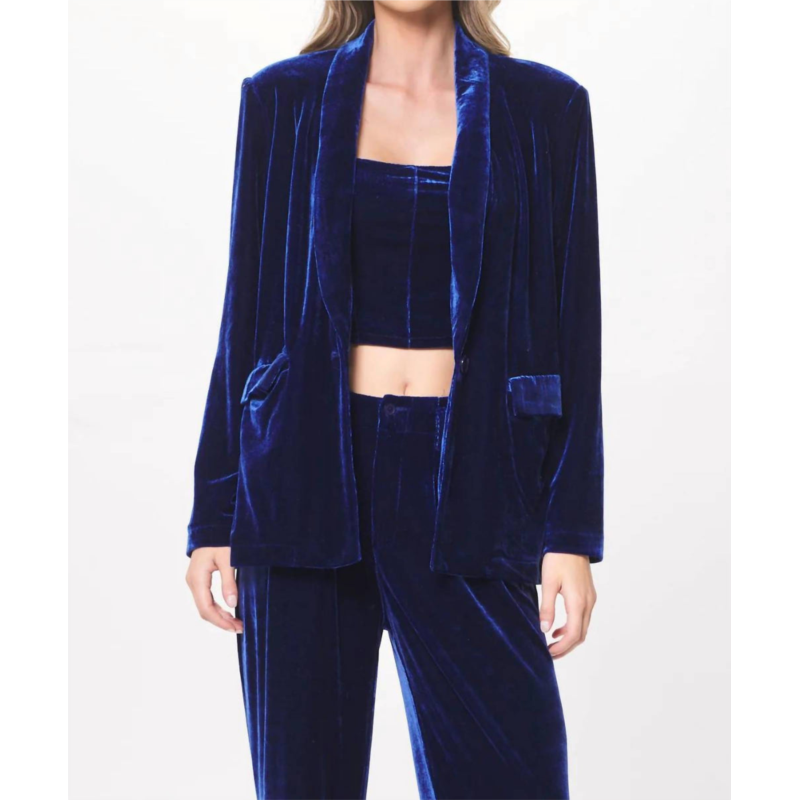 An elevated version of your favorite classic blazer.Oversized shawl collar velvet blazer has flap pockets and is fully lined