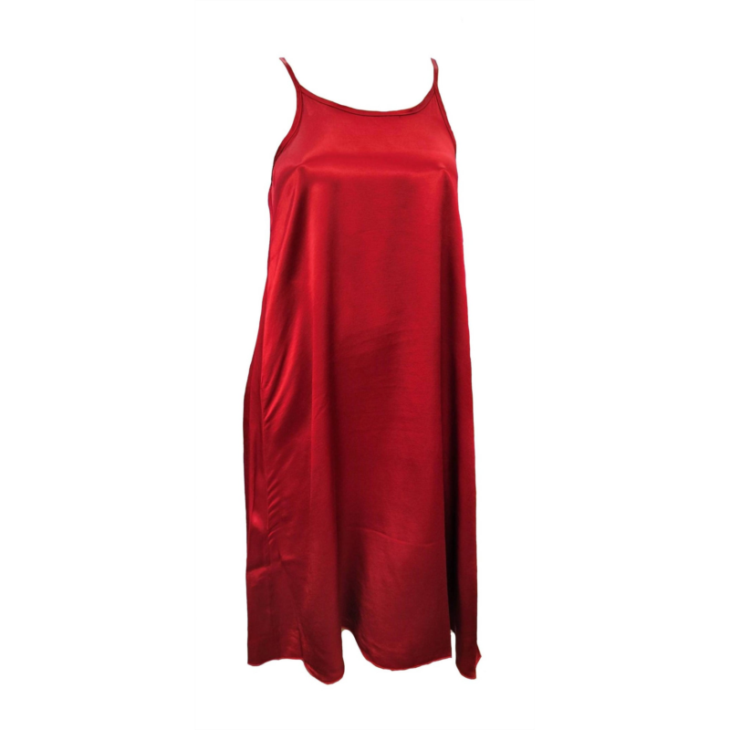 [US] PJ Harlow ruby satin knee length gown with spaghetti straps & gathered back