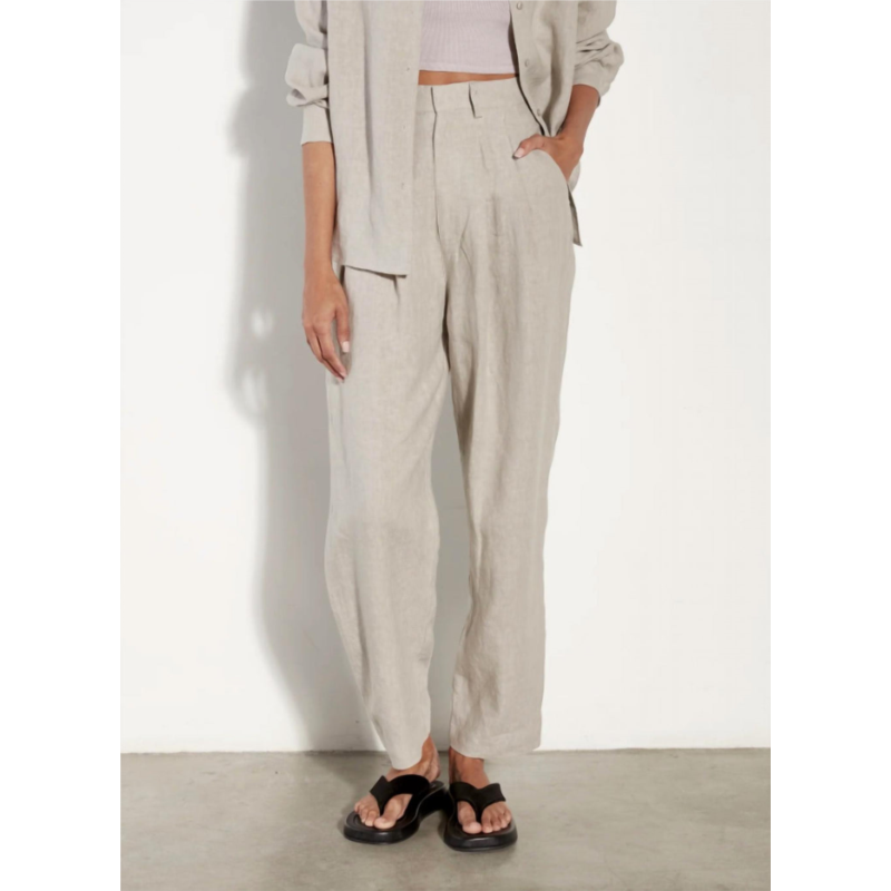 This straightleg pant is both stylish and comfortable. Did we mention the fit is perfection?Relaxed leg trouser featuring a high rise and pleated waist. 100% French Linen. Machine wash do not dry. Handmade in the USA. FIT TIP - Fits true to size.