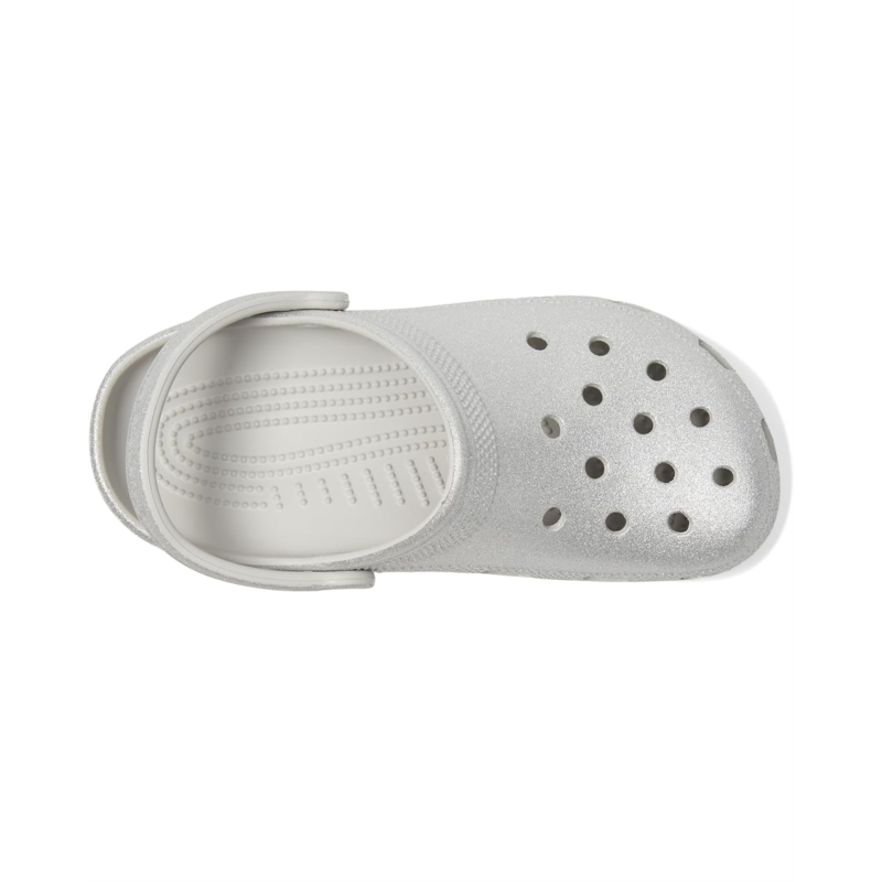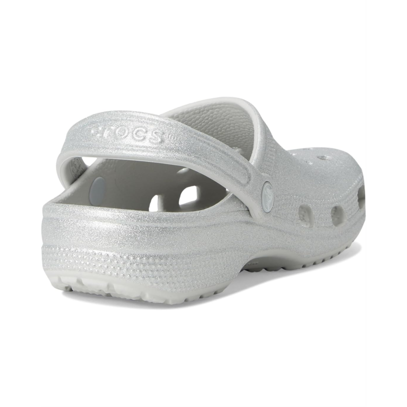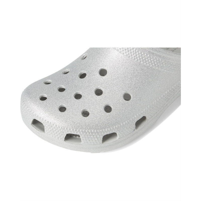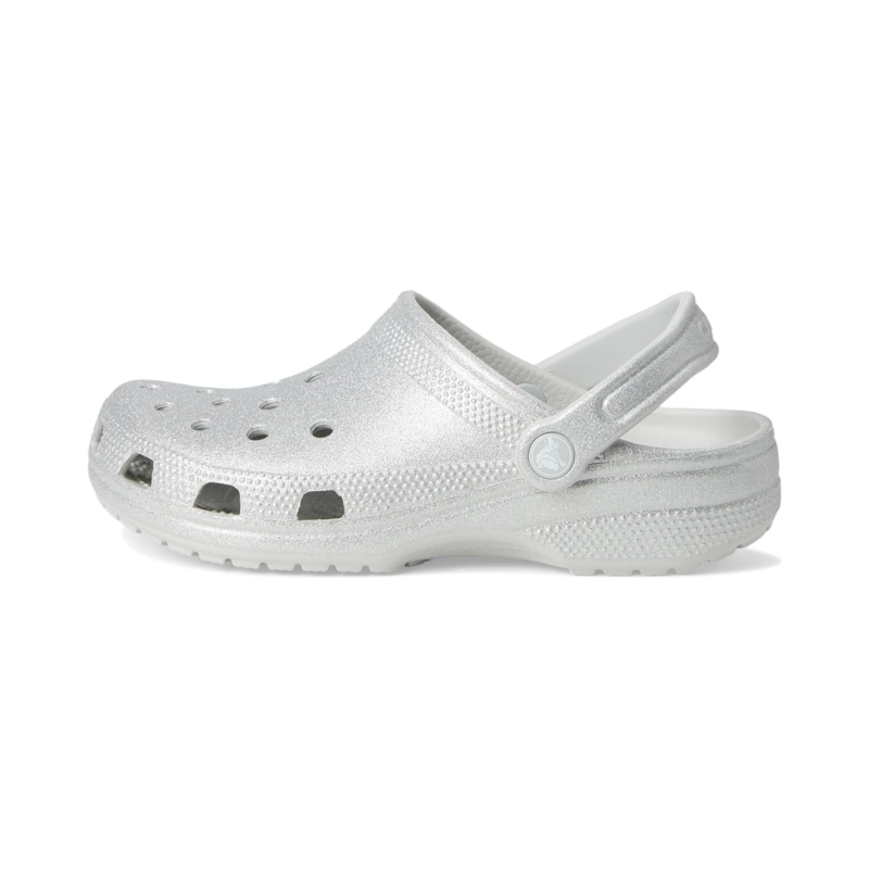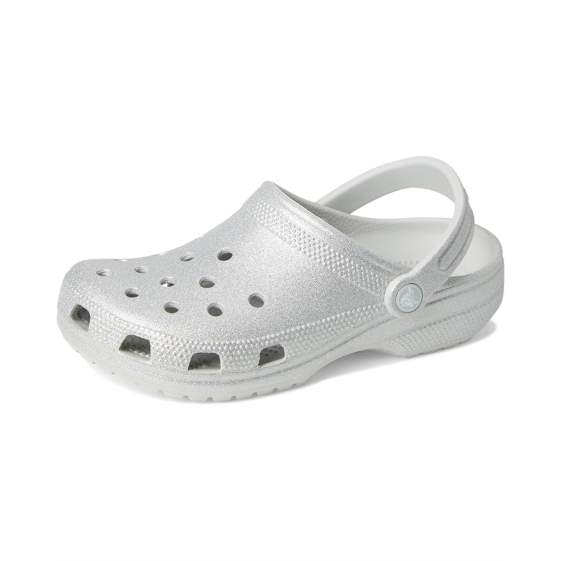 - The iconic clog that started a comfort revolution around the world, now with an adorable all-over glitter treatment! It''s the irreverent, go-to comfort shoe that you''re sure to fall deeper in love with day after day. Crocs Classic Clogs feature lightweight, cushioned construction and offer an ongoing invitation to be comfortable in your own shoes. Sparkle on!