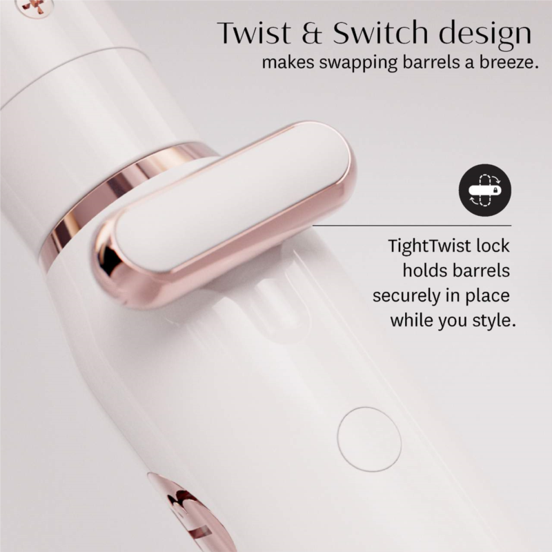 What it is: An interchangeable curling iron with a 0.5” wand barrel, 1.25” wand barrel, and 1.5” clip barrel for endless looks with a shiny, long-lasting finish. All T3 Switch Kits are not compatible with the original T3 Convertible Power Base.