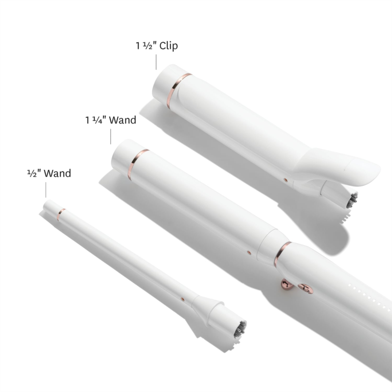 - Interchangeable 0.5” wand, 1.25” wand, and 1.5” clip barrels for maximum styling versatility