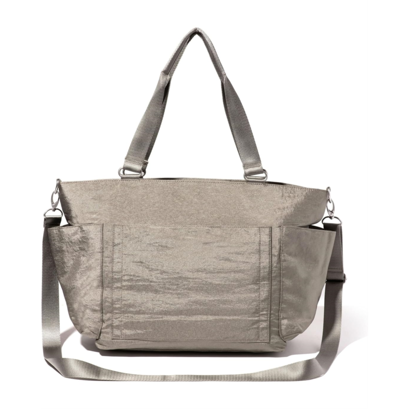- The Baggallini Modern Avenue Tote is the perfect companion for your daily adventures. Made with durable nylon on the outside and soft polyester on the inside, this lightweight tote is as practical as it is stylish. Its thoughtful design includes a built-in luggage handle sleeve, making travel a breeze. The adjustable and removable crossbody strap adds versatility to your carrying options.