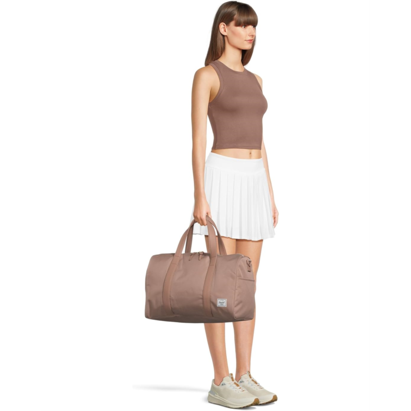 - Carry your essentials for a weekend to the country home getting the Herschel Supply Co. Novel Carry-On Duffel bag. It features ECOSYSTEM 600D fabric construction, made from post-consumer water bottles. The double top handle and removable crossbody padded strap make it convertible. The waterproof zippered closure and signature shoe compartment make it ideal pick for travel.
