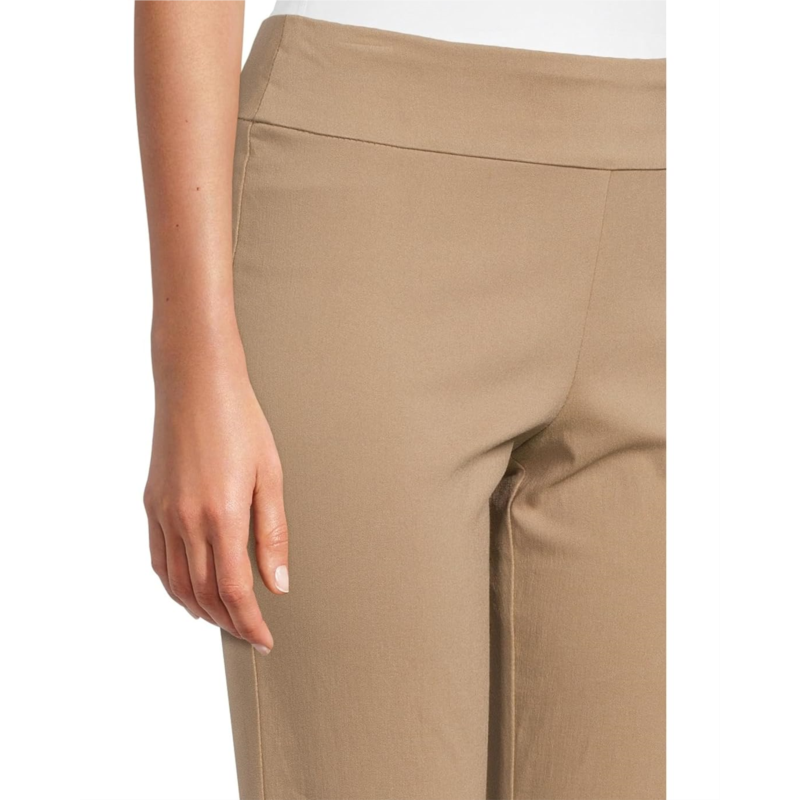 - Dressy figure-flattering pant boasts a smooth blend of nylon and rayon with spandex for a smidgen of stretch.