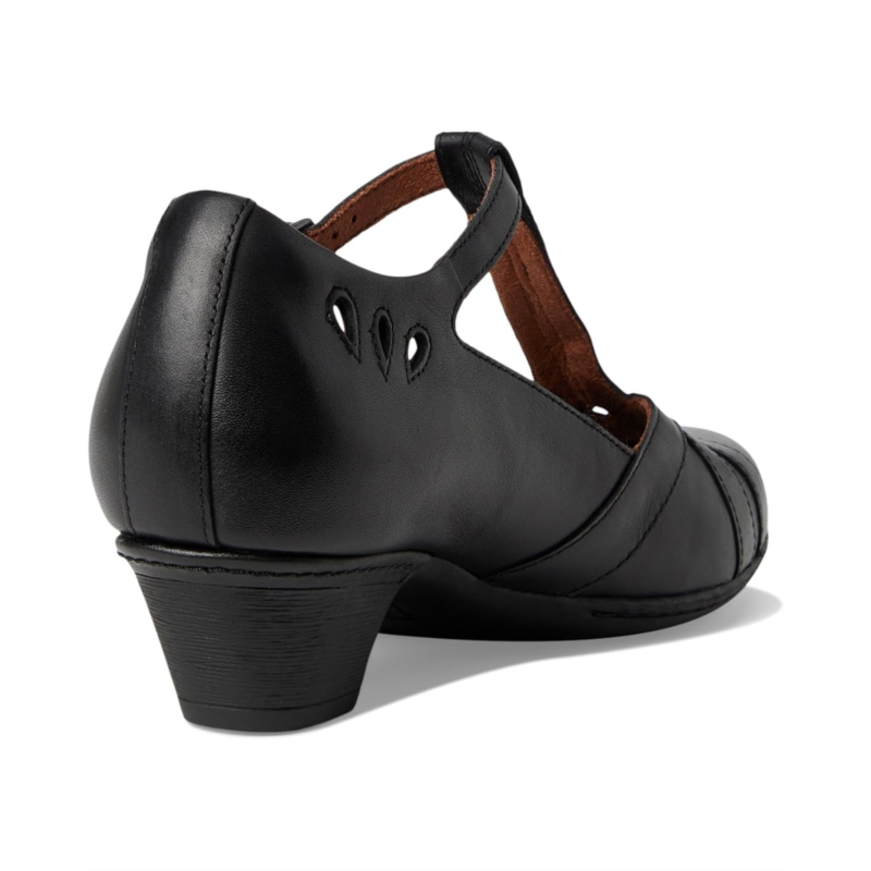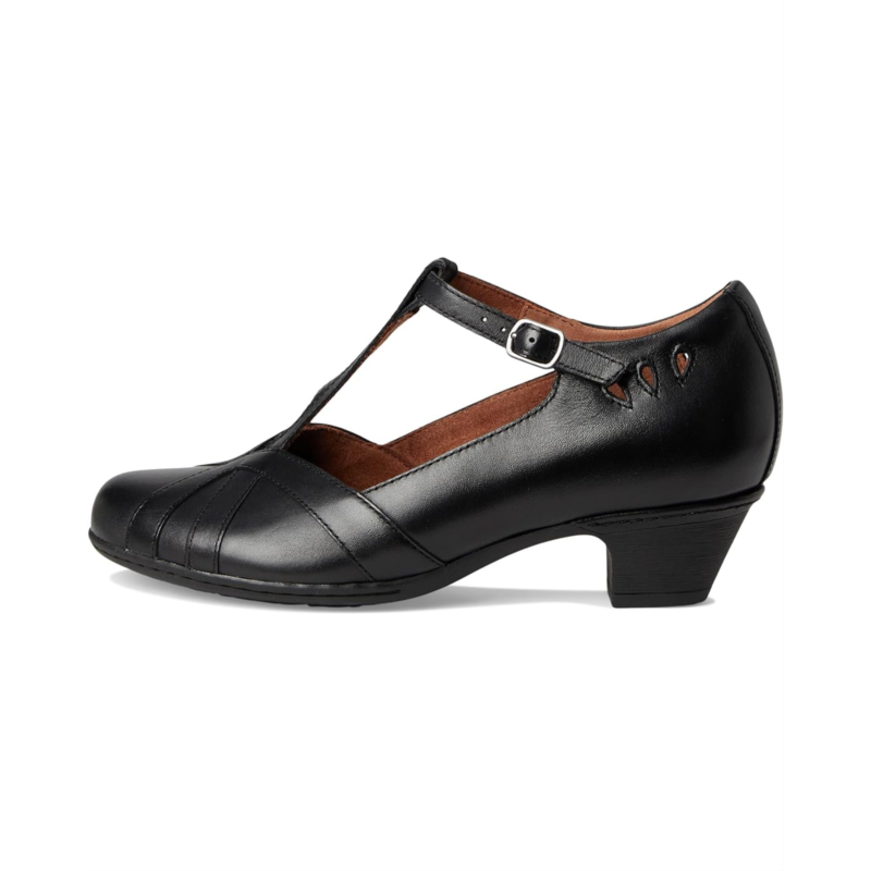 - Full grain leather upper features a t-strap design.