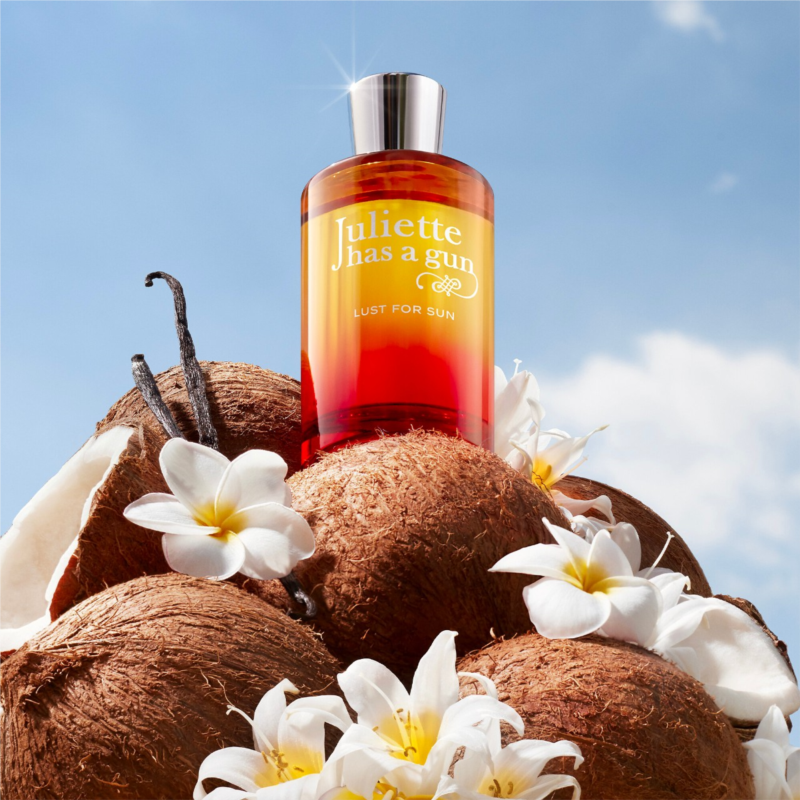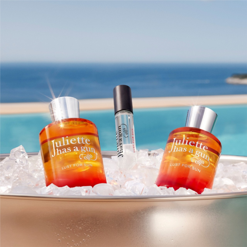 About the Fragrance: \''With Lust For Sun, I imagined a new playground for our Juliette: her swimming pool. It’s a dreamy decor, where Juliette sets the rules and expects her entourage to fulfill her every desire?even her pink flamingo wears a scarf for a quick pose in front of the endless pool and the infinite horizon.\'' ?Romano Ricci