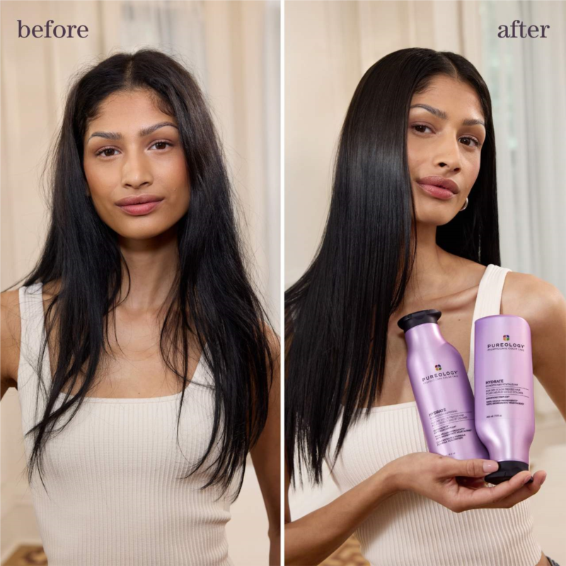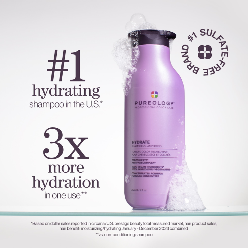 Based on a consumer study of 82 people with self-perceived dry hair using a regimen of Hydrate Shampoo and Hydrate Conditioner (sold separately):