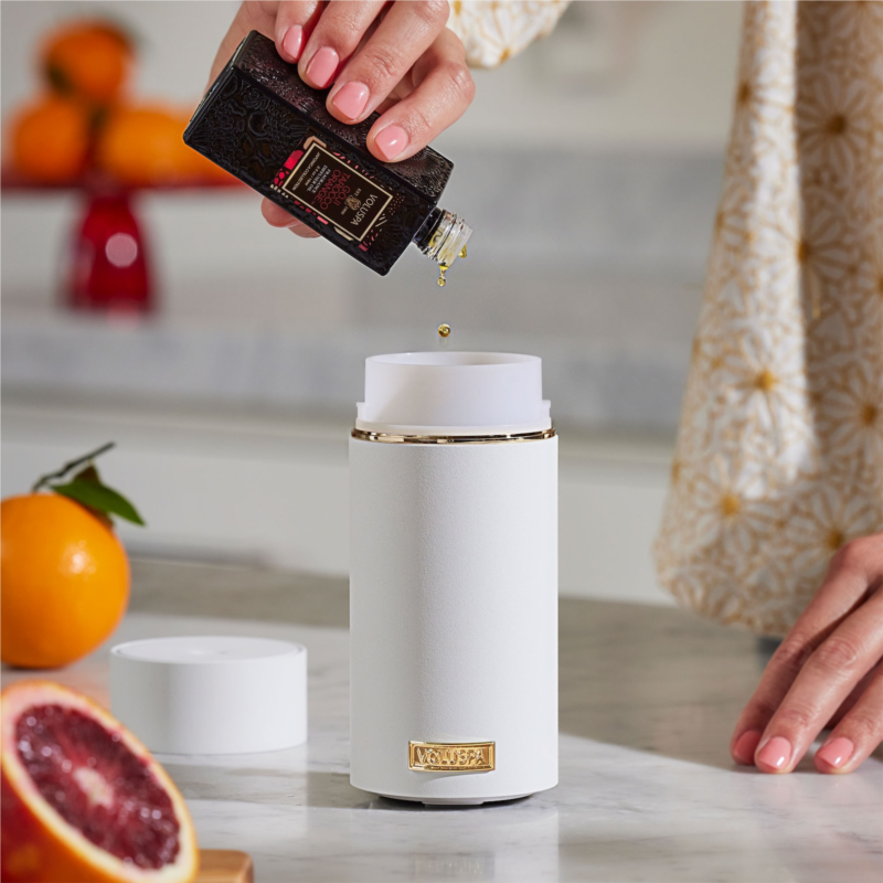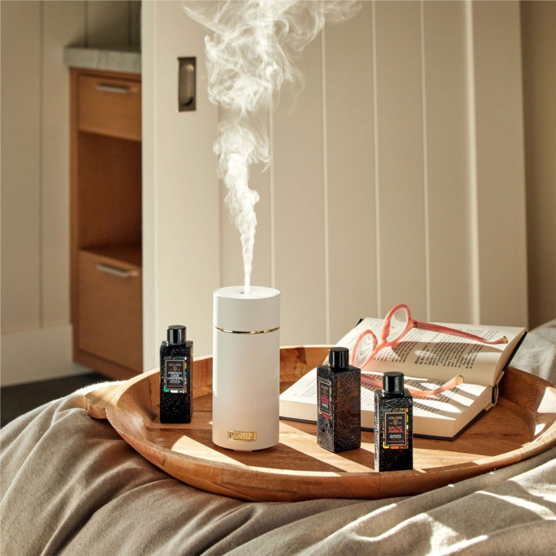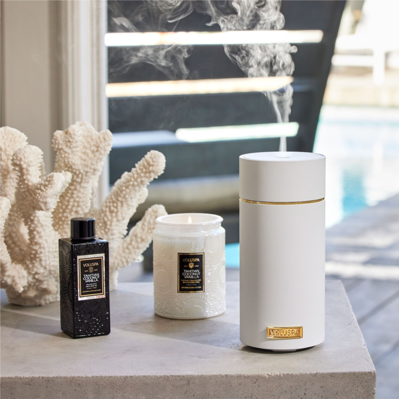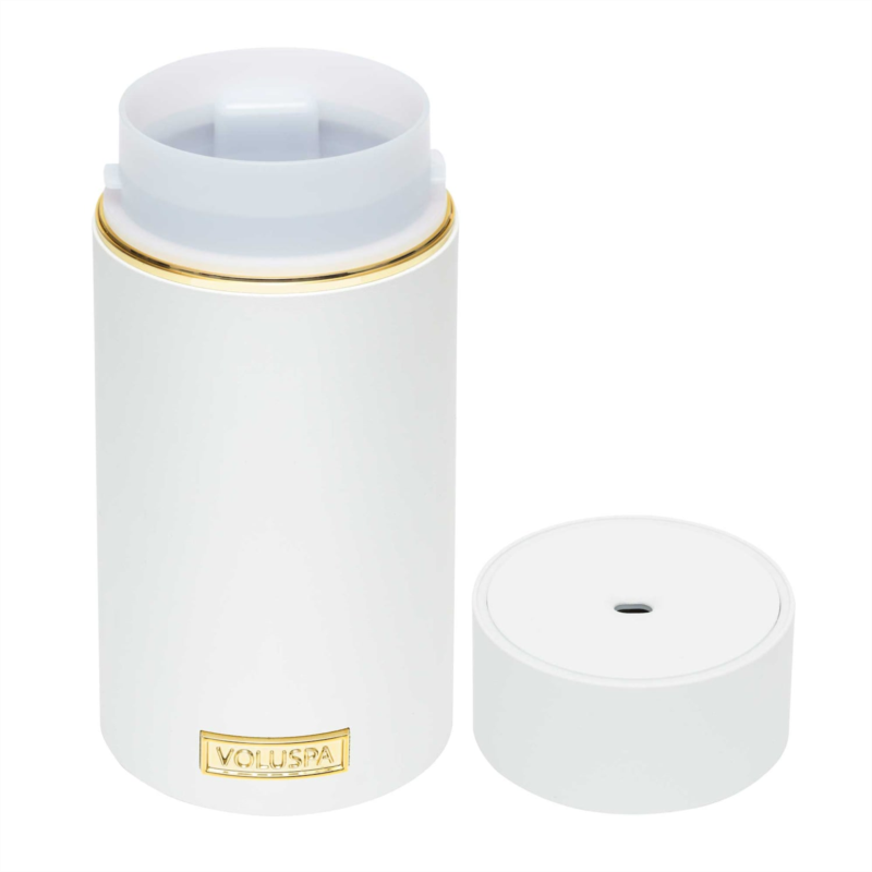 The silhouette masters the elegance of symmetry and is built to last. Anchored by a weighted matte-white metal body and styled with signature Voluspa embellishments, the design is as flawless as the experience. Create a scent combination that’s unique to you and personalize strength to your liking?add more drops of fragrance oils to amplify the ambience, or less for sensitive noses. Your fragrant companion will scent up to 500 square feet. Punctuate your day?with this olfactory soundtrack to your life.
