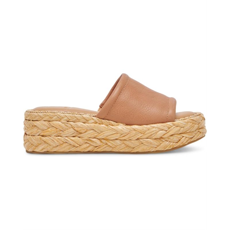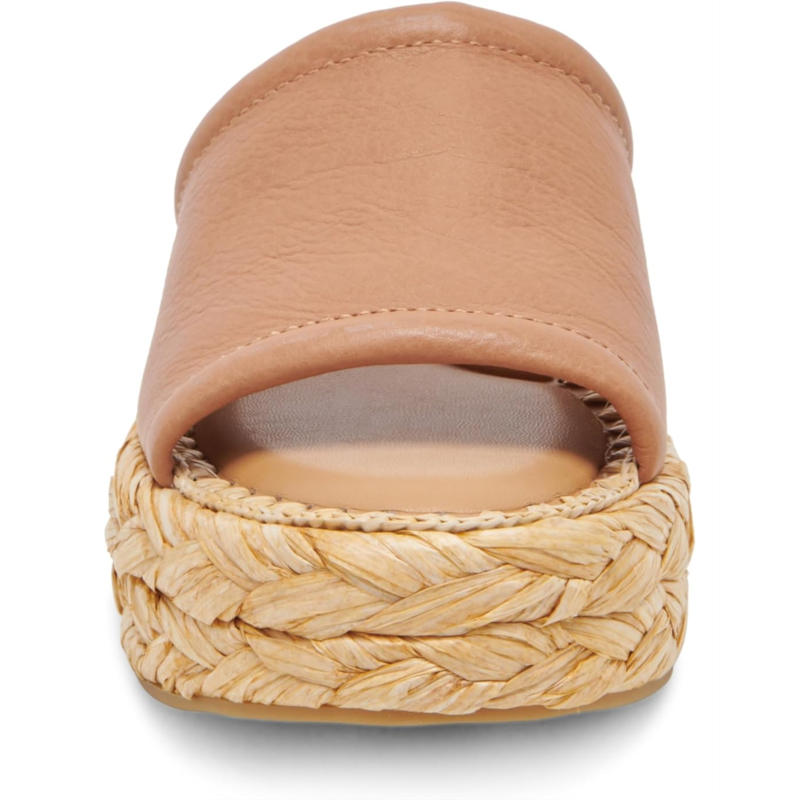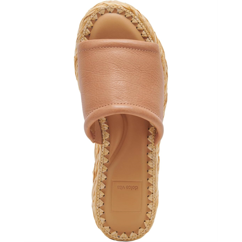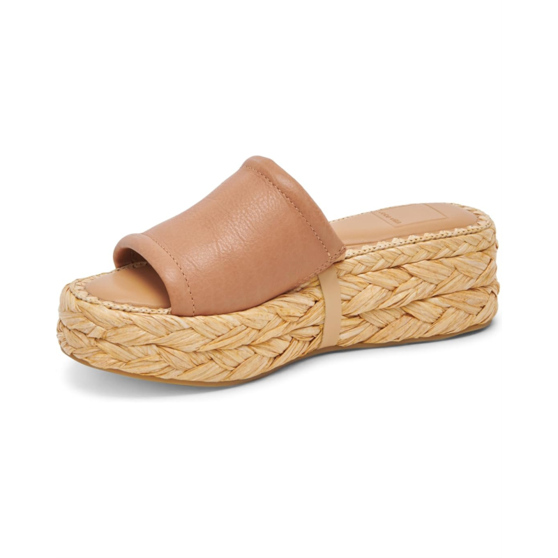 - Synthetic raffia, textile, or leather upper.