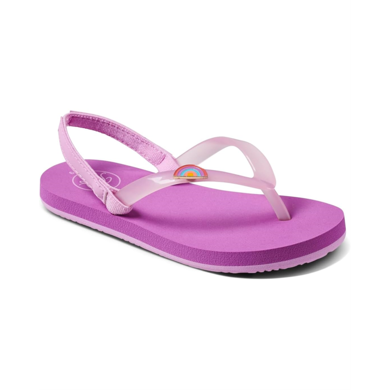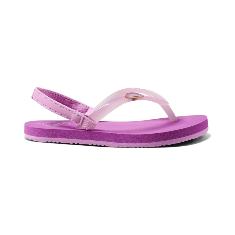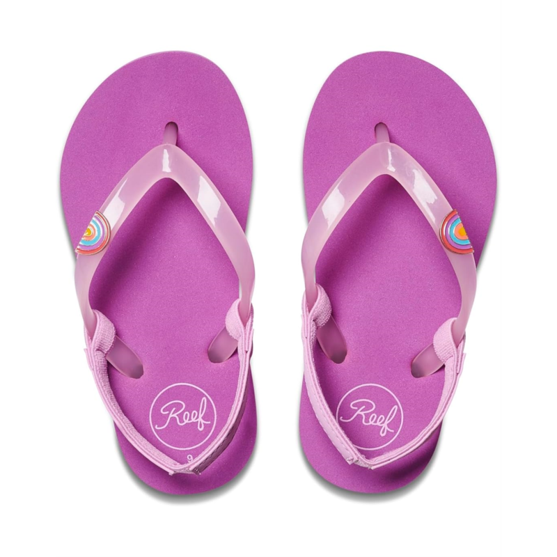 - Let your kiddo lead the way in comfort elegance wearing Reef Kids Little Charming Flip Flops. The slip-on footwear features soft and flexible PVC-free TPU strap with an enamel charm and elasticized slingback strap closure.