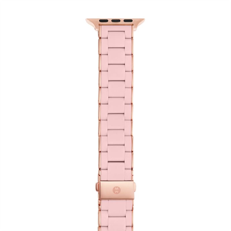 Michele womens 38/40/41mm and 42/44/45/49mm barely pink and pink stainless steel and silicone band for apple watch ms