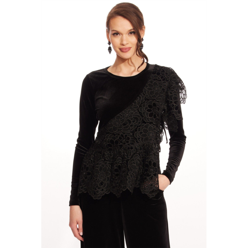 The Cleopatra Top is an innovative style that blends a buttery-soft velvet with a structural one-shoulder overlay in our Raven''s Nest fabric. The overlay has a ruffle that cascades over the shoulder down to the hem.