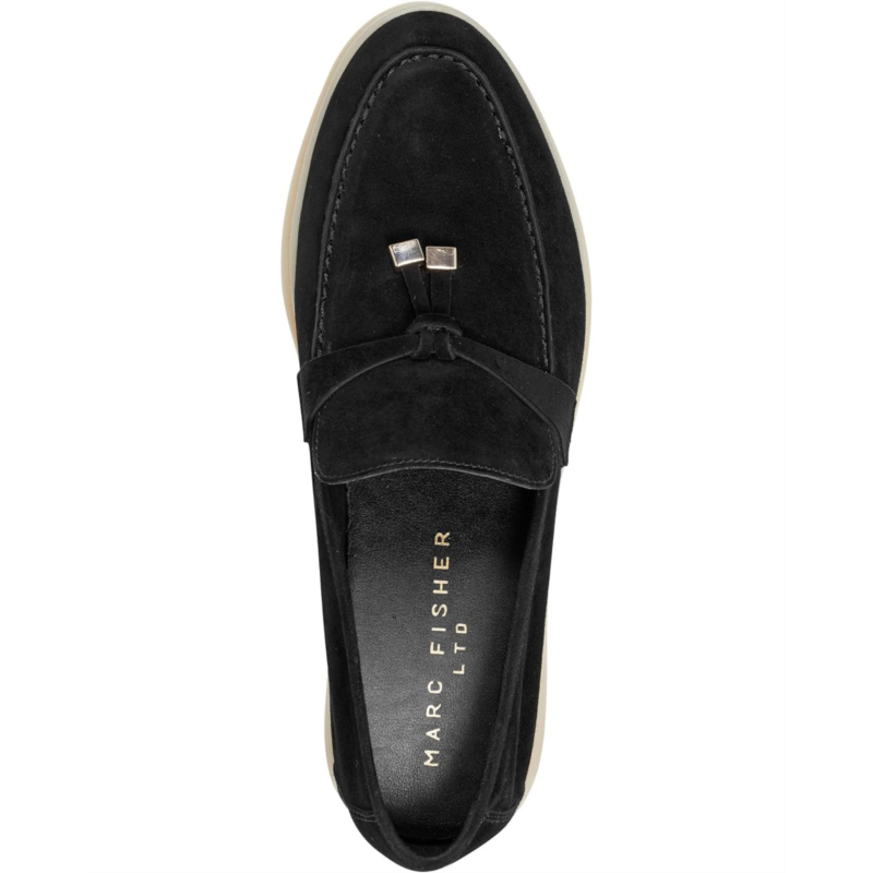 • Match your casual outfits and formal looks with the Marc Fisher LTD Yanelli shoes. Lightweight and comfortable, these loafer shoes feature a slip-on style for easy on and off. Crafted with cushioned insole and synthetic lining, they offer all-day comfort. The suede upper of these shoes is styled with a knotted detail and hardware accents. These low-top loafers work for different occasions.