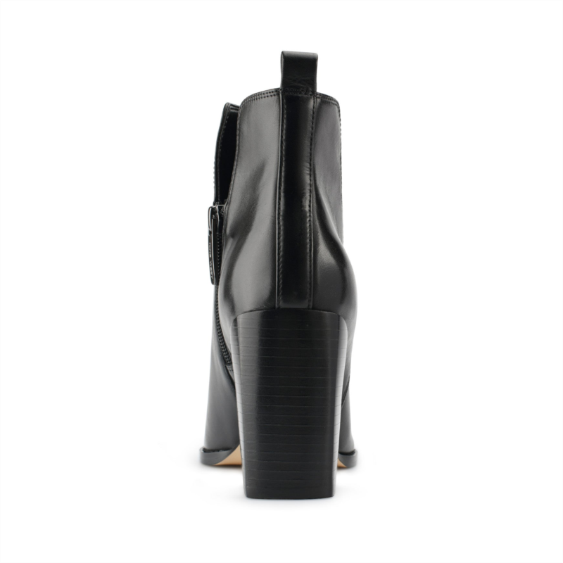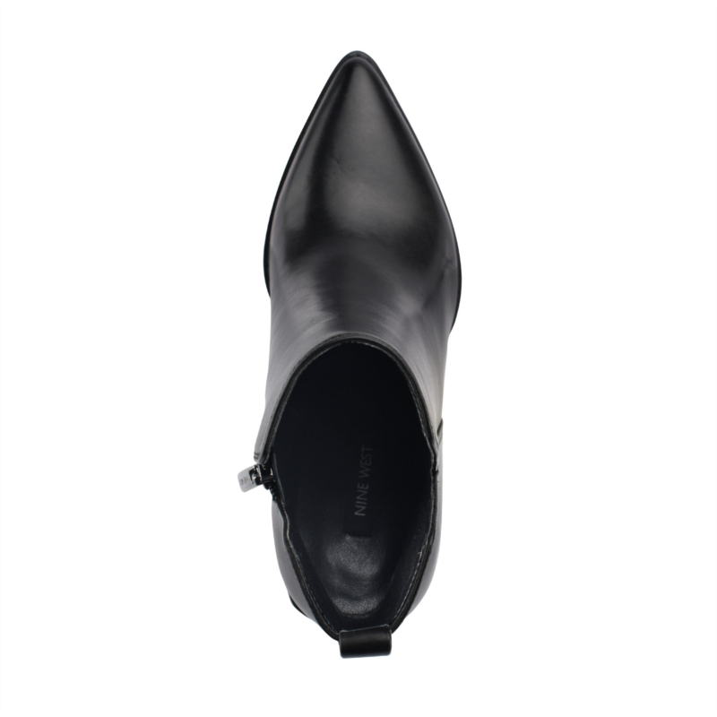 [US] Womens Birds Block Heel Leather Booties - Black Leather Nine West