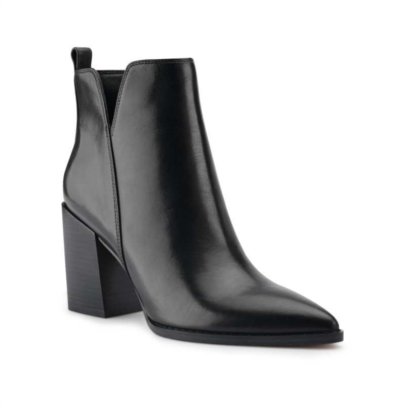Womens Birds Block Heel Leather Booties - Black Leather Nine West