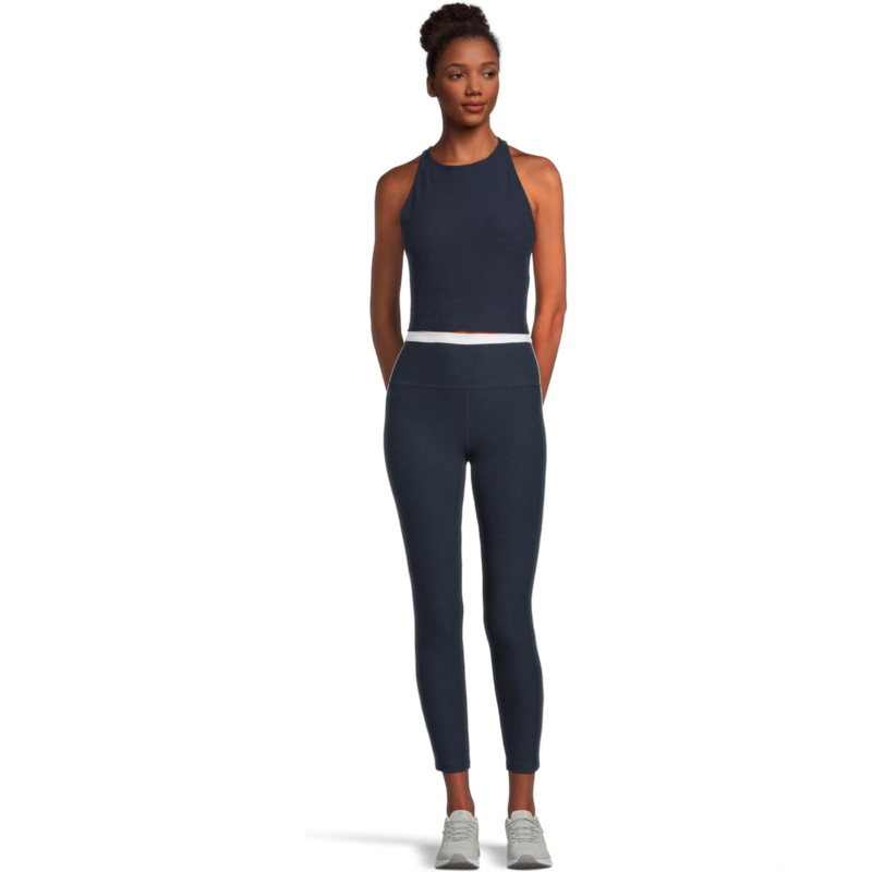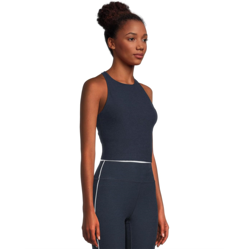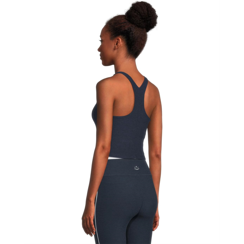 - Focus on your workout in the comfy racerback design Beyond Yoga Spacedye Refocus Cropped Tank. This pullover yoga tank features a high scoop neck and a medium support shelf bra to support every type of workout from pilates to dancing sessions.