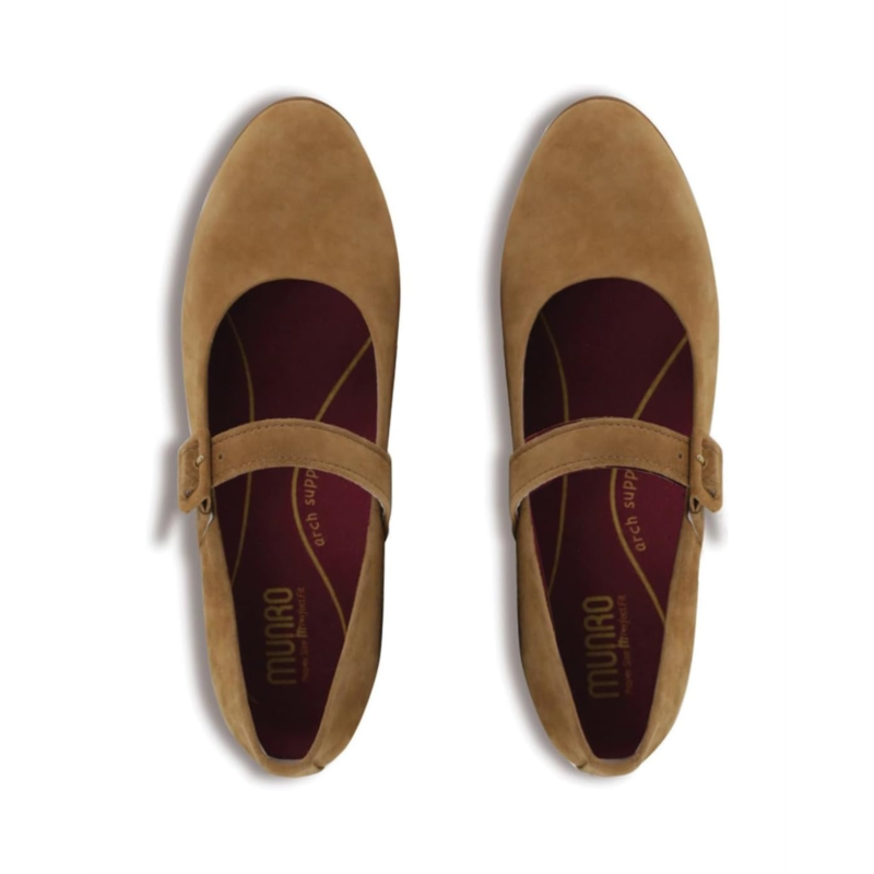 - Channel your love for that old-school fashion by pairing your look with the simple but elegant Munro Mj Flats. This timeless pair of shoes show off a refined almond toe with a hidden wedge and come with a leather-covered buckled strap with an adjustable hook-and-loop closure. The smooth upper of these shoes is made of leather while their interior features microfiber lining.