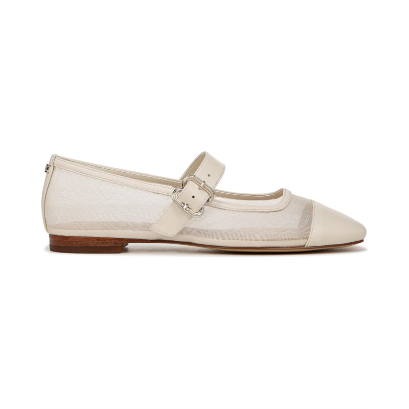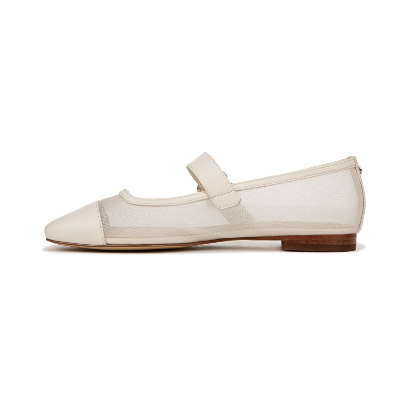 - Slip-in style and comfort by wearing the Sam Edelman Miranda flats. The slip-on style footwear has a low-top silhouette with cap square-toe detail and an ankle strap with buckle closure. The flats have a mesh upper, polyester lining, and EVA insole for a comfortable wearing experience.