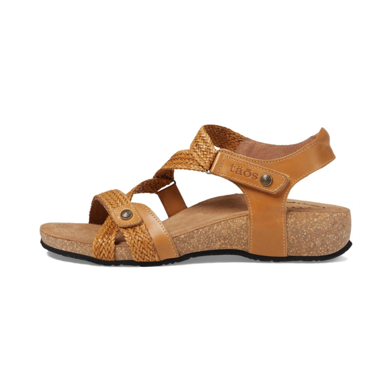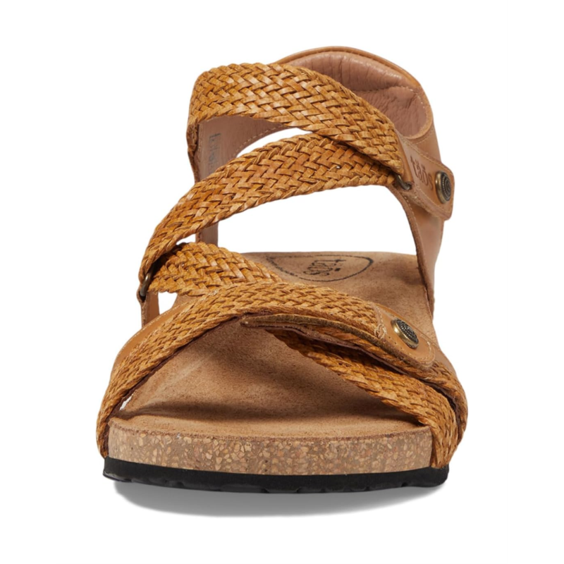 - The strappy Taos Footwear Trulie open-toe leather sandal offers comfort and style.