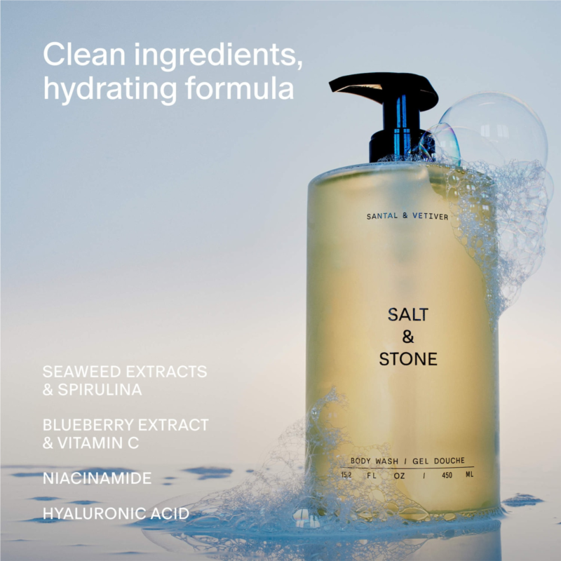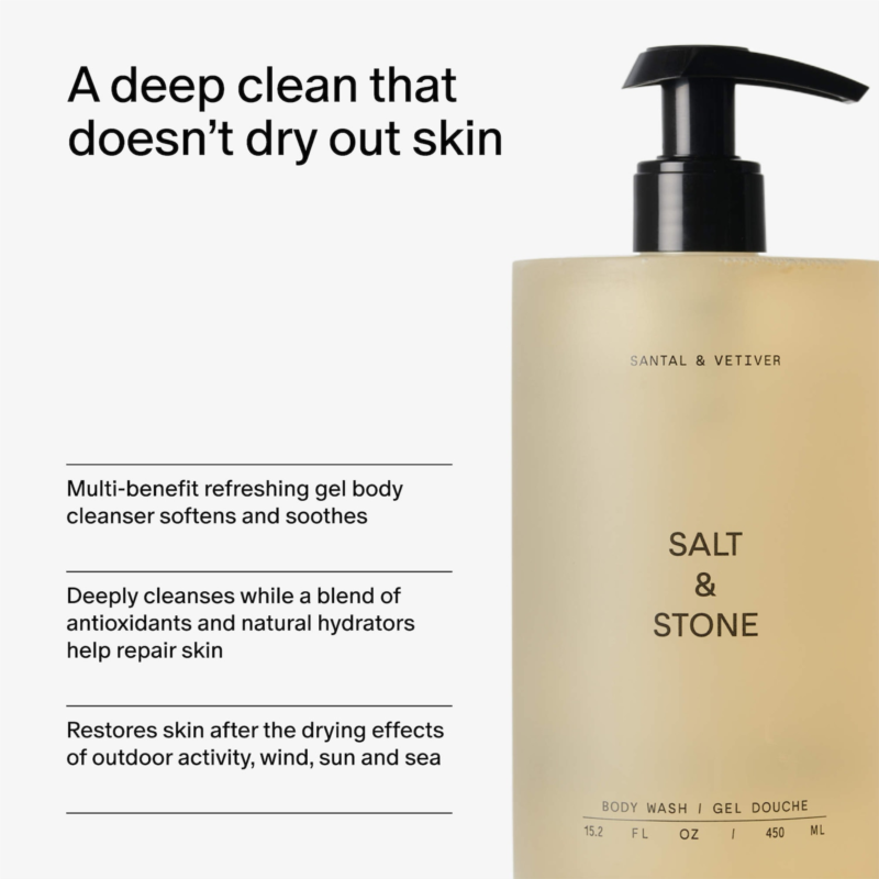 What Else You Need to Know: This body wash is formulated to soften and soothe while cleansing to restore the drying effects of outdoor activity, wind, sun, and sea. Soothe and focus with the bestselling scent, Santal & Vetiver. Niacinamide supports a stronger skin barrier to visibly improve the skin''s texture while probiotics neutralize odor and fight bacteria. Antioxidant-rich ocean botanicals and vitamin C from blueberry extract fight free radicals introduced to skin by sun exposure, reinforcing skin’s collagen production and defending against visible signs of aging.