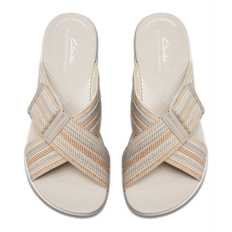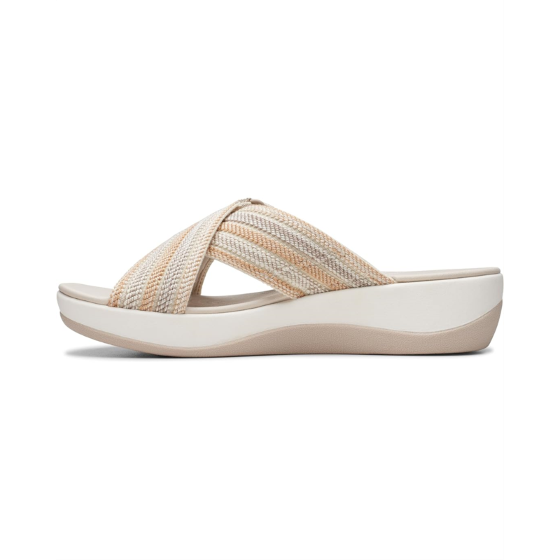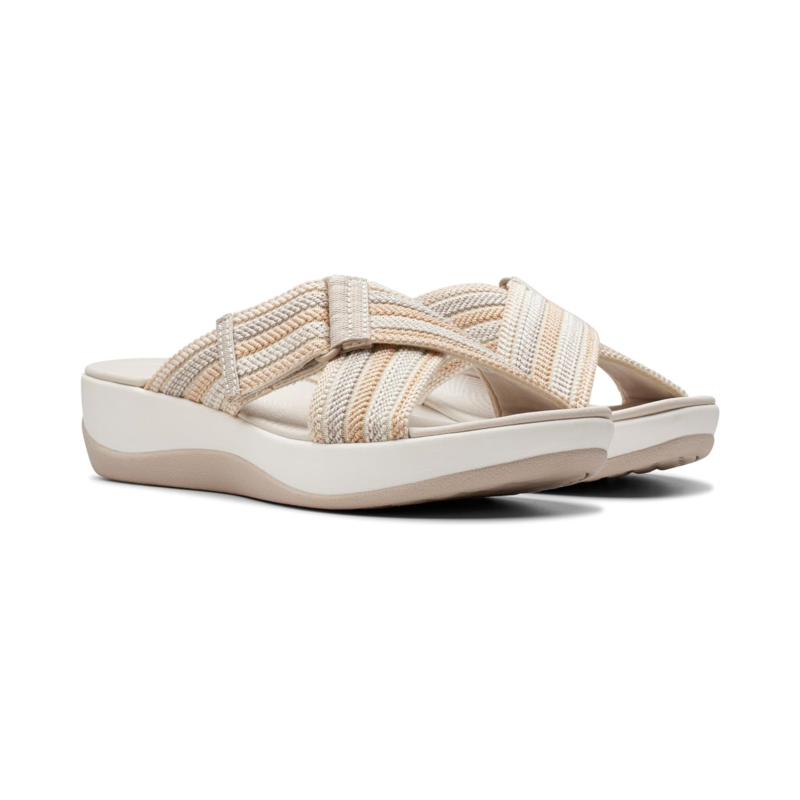 - Designed to match your comfort and style, the Clarks Arla Wave sandals are crafted with a plush nylon upper with an adjustable hook-and-loop strap that offers a secure fit. The Cushion Soft foam footbed and mesh lining keep your feet cool and comfortable. These slide sandals are machine washable and feature an open, round toe silhouette. Match your casual outfits and get ready for the beach wearing these comfy sandals.