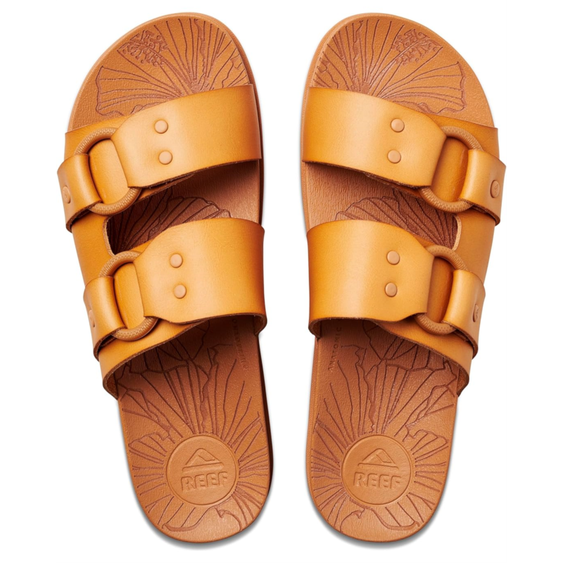 - Featuring a convenient slip-on style, the Reef Cushion Vera Cruz sandals are designed keeping in mind everyday comfort and style. From casual trousers to denim shorts, they are the perfect footwear choice for different styles and looks. Offering a blend of rebound support and cushioning, the footbed features a hibiscus flower design deboss along with heel cupping and arch support. Flaunt a chic, laid-back style wearing these chunky slides.