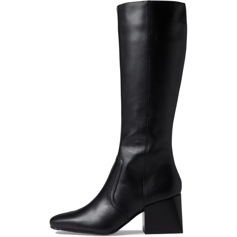 • Square toe silhouette with a stacked heel.