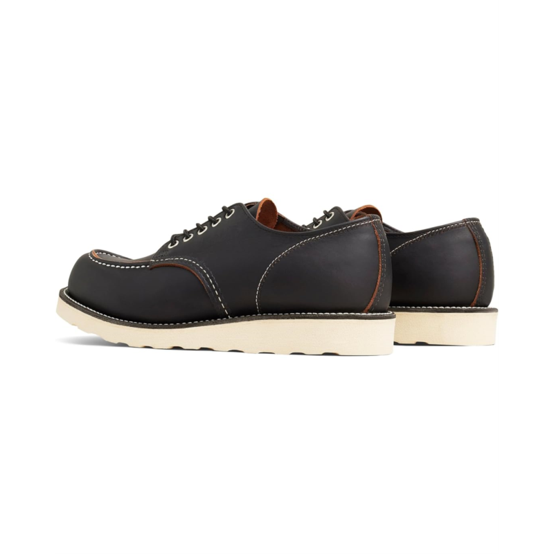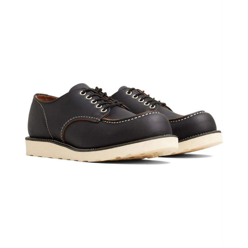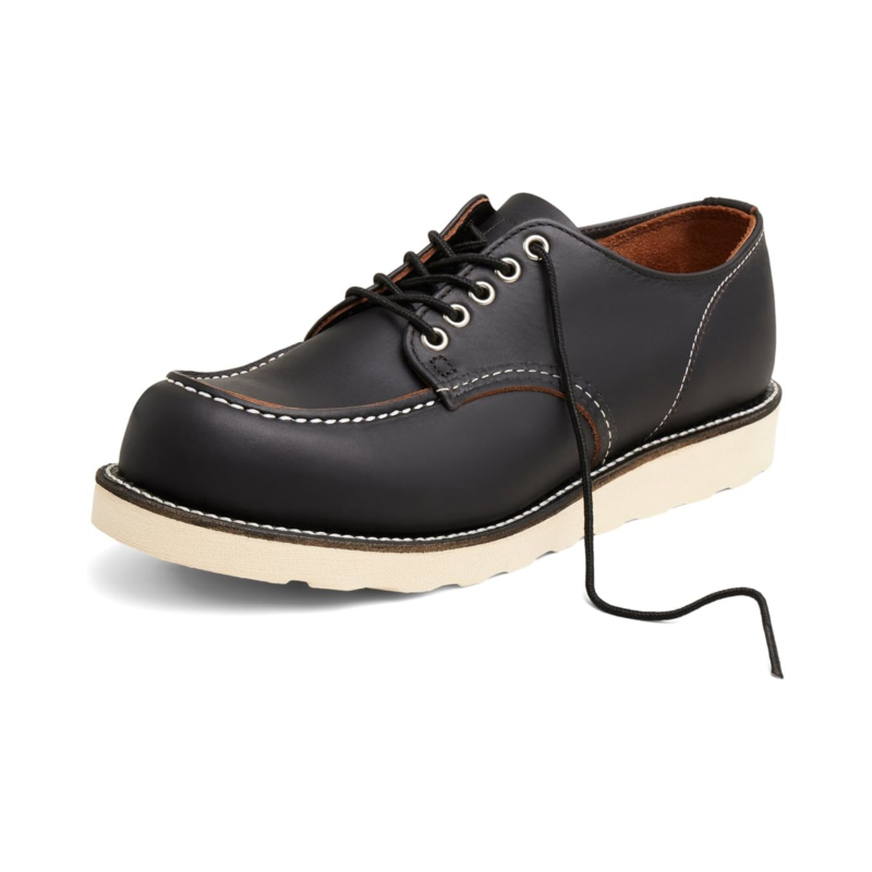 - Revive your love for classic fashion and celebrate superior comfort on your work days by opting for the Red Wing Heritage Shop Moc Oxfords. Backed by a Goodyear leather welt with triple stitched detailing for enhanced durability, these shoes feature a premium leather upper, lining, and insole. These are framed with a timeless moc toe and come equipped with a lace-up closure with five nickel-plated eyelets.