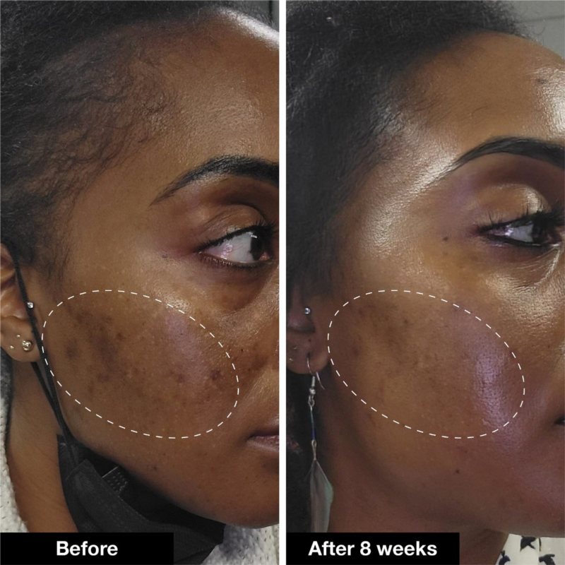 - Peptide and Tranexamic Acid: Visibly firm and fade hyperpigmentation for a brighter, more even-toned look.