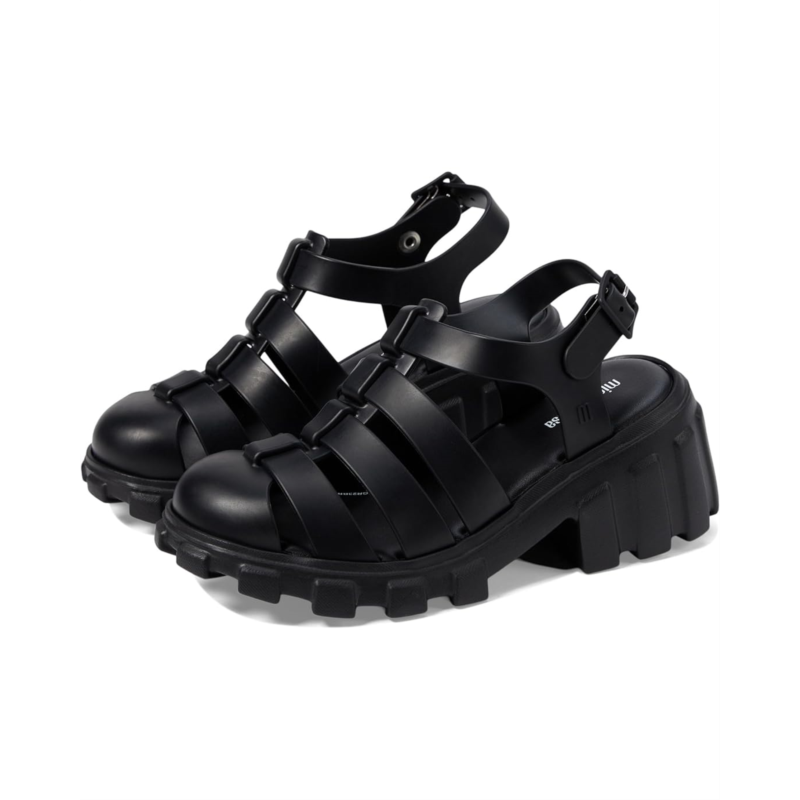 - Designed to complement your younger one''s playful personality, the Mini Melissa Megan Kids Sandals make a great choice for everyday wear. Available in neutral and shimmery hues, these 100% recyclable and water-resistant shoes are crafted with a sleek and strappy PVC upper teamed with a laminated PVC insole that offers light padding. With the buckle closure on the ankle strap, the footwear is easy to wear and delivers a secure and adjustable fit.
