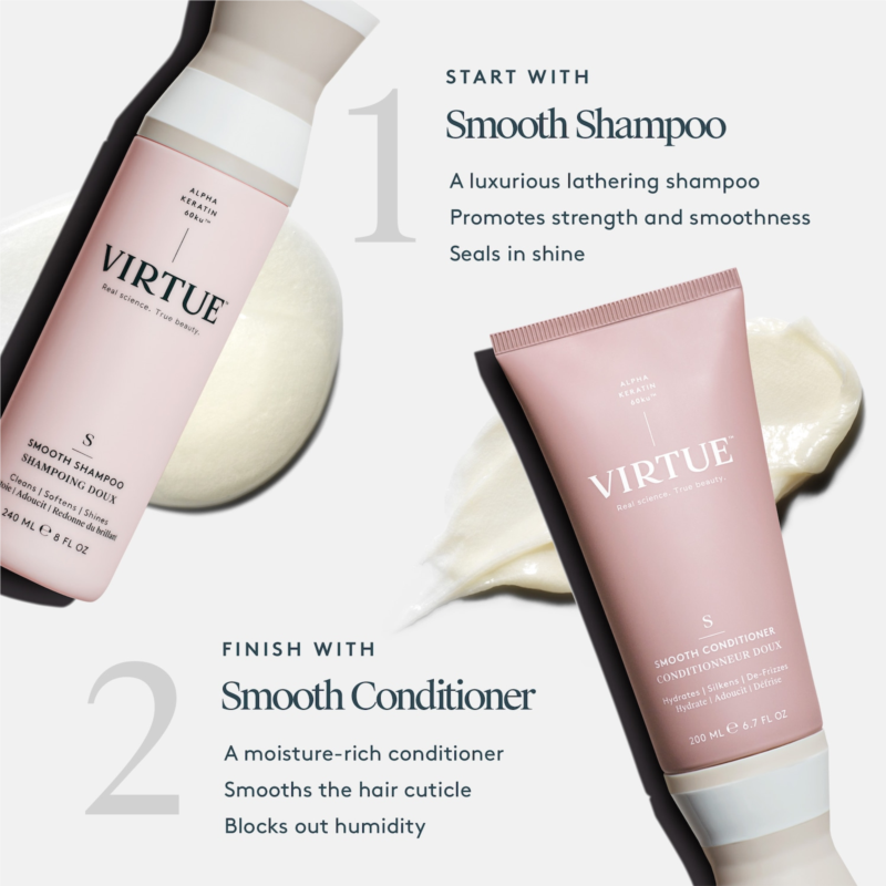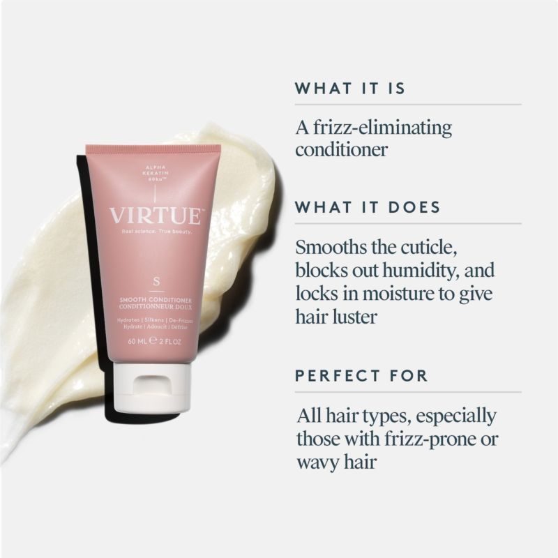 What Else You Need to Know: Formulated with a first-of-its-kind Alpha Keratin 60ku protein, Virtue Smooth Conditioner acts as a powerful daily treatment for hair. It repaves rough cuticles and reduce friction between each strand, tackling frizz at the source for haircare that goes light years beyond basic cleansing. It features a restorative blend of herbs, fruits, and citrus, incorporating soothing lavender and fresh mint essential oils.