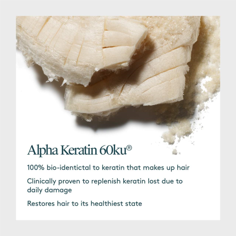 -Alpha Keratin 60ku: a healing protein that’s identical to the keratin that makes up 90% of our hair. It repaves and refills keratin, repairing damaged hair with each use.