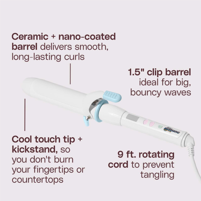 What it is: A classic 1.5\'' curling iron that produces big, voluminous curls and soft waves with supreme staying power. The clamp allows for greater control while curling and provides pressure to boost shine.