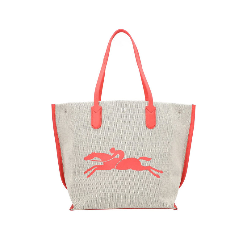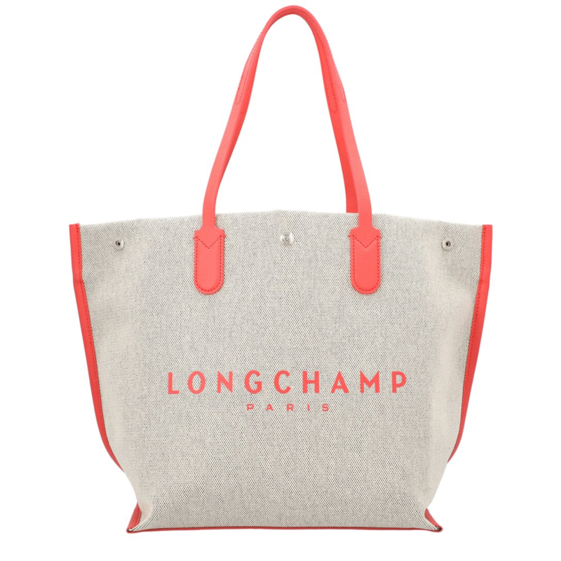 Elevate your everyday style with the Longchamp Essential Large Canvas Tote. Known for their understated luxury leather goods with a French elegance, Longchamp delivers a chic and timeless tote bag made in France. The beige and orange canvas exterior is accented with silver-tone hardware and contrast handles, adding a pop of color to your look.This spacious tote features a main compartment, two inside flat pockets, and one inside zipped pocket for easy organization. With a top handle and snap button closure, this tote is both functional and stylish. The Longchamp Essential Large Canvas Tote measures 12.6 inches wide, 12.6 inches high, and 6.7 inches deep, making it the perfect everyday accessory.Please note that all measurements are approximate and slight variations may occur. Rest assured, our products are 100% genuine, sourced from trusted independent suppliers. Embrace French luxury with the Longchamp Essential Large Canvas Tote.