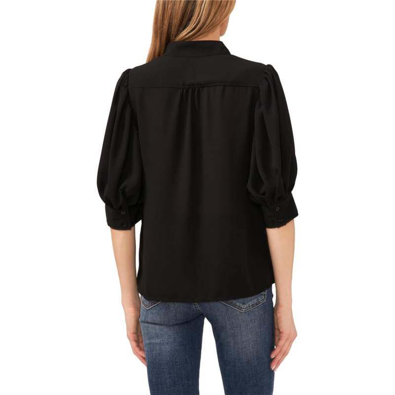 - Ease up in style from office to street frolics wearing the CeCe Elbow Sleeve Open Collar Blouse. It features a band collar, elbow-length puffy sleeves with buttoned cuffs, and concealed button-down front placket.