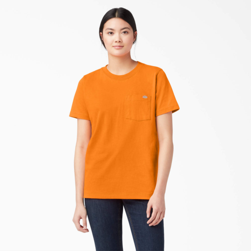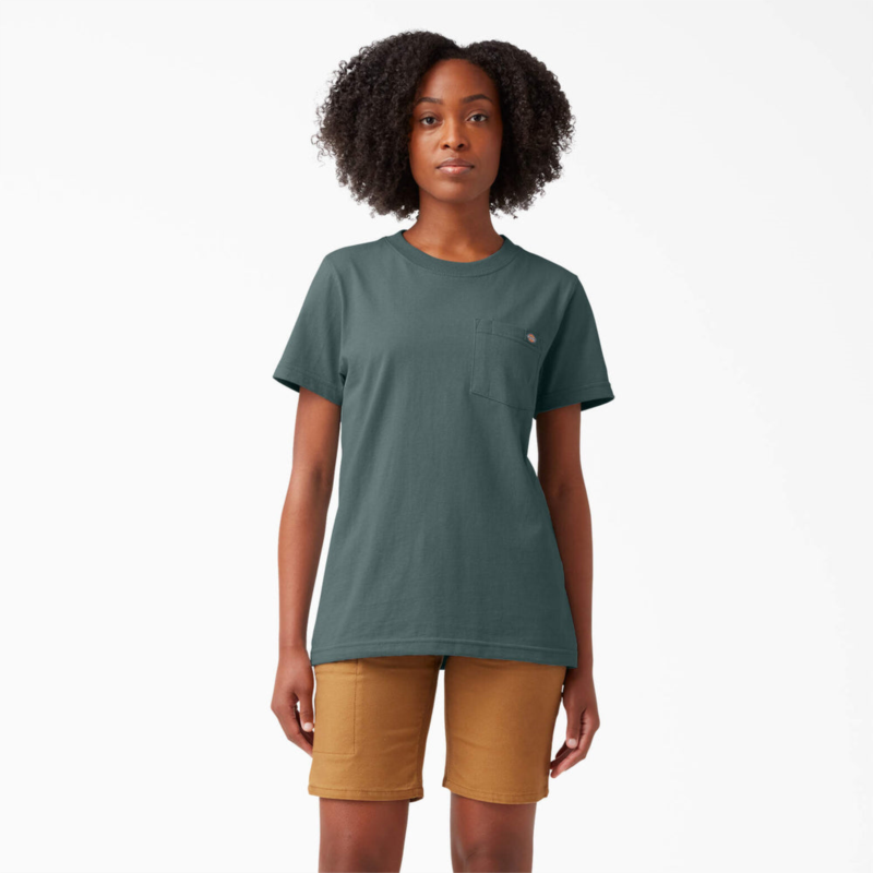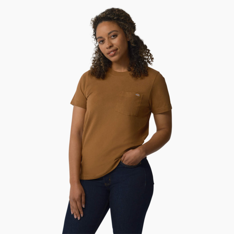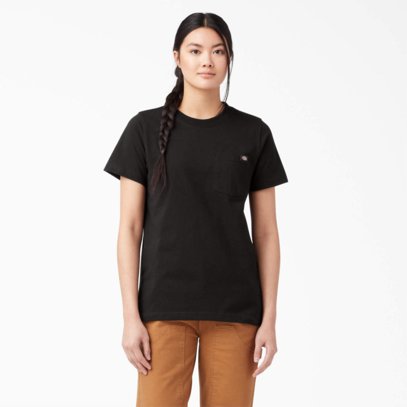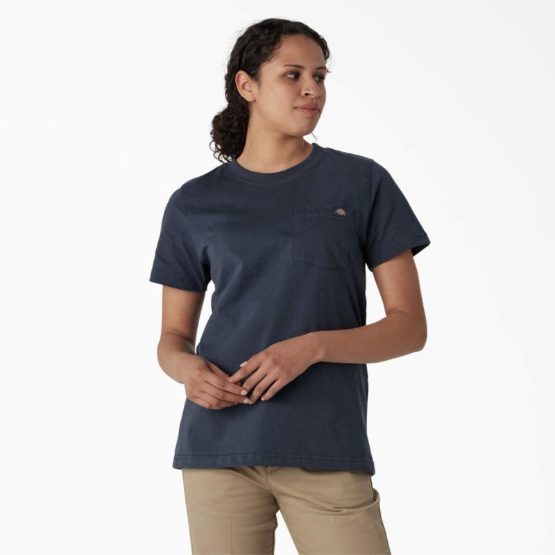 Get down to business in Dickies Women''s Short Sleeve Heavyweight T-Shirt. Built with a solid cotton fabrication, this jersey knit t-shirt is built to stay soft for comfort, while also designed durable enough to take daily wear and tear. The chest pocket adds a touch of utility to the shirt, letting you carry small belongings you''ll need throughout your day.