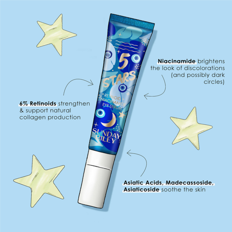 What Else You Need to Know: This wrinkle-fighting eye serum is powered by a six percent retinoid complex and bioactive Centella asiatica to support natural collagen production. Balanced with soothing poppy seed extract and nurturing ceramides, this serum also includes olive oil and shea butter to hydrate and restore skin while you sleep. This product is clinically tested to be nonirritating to the eye.