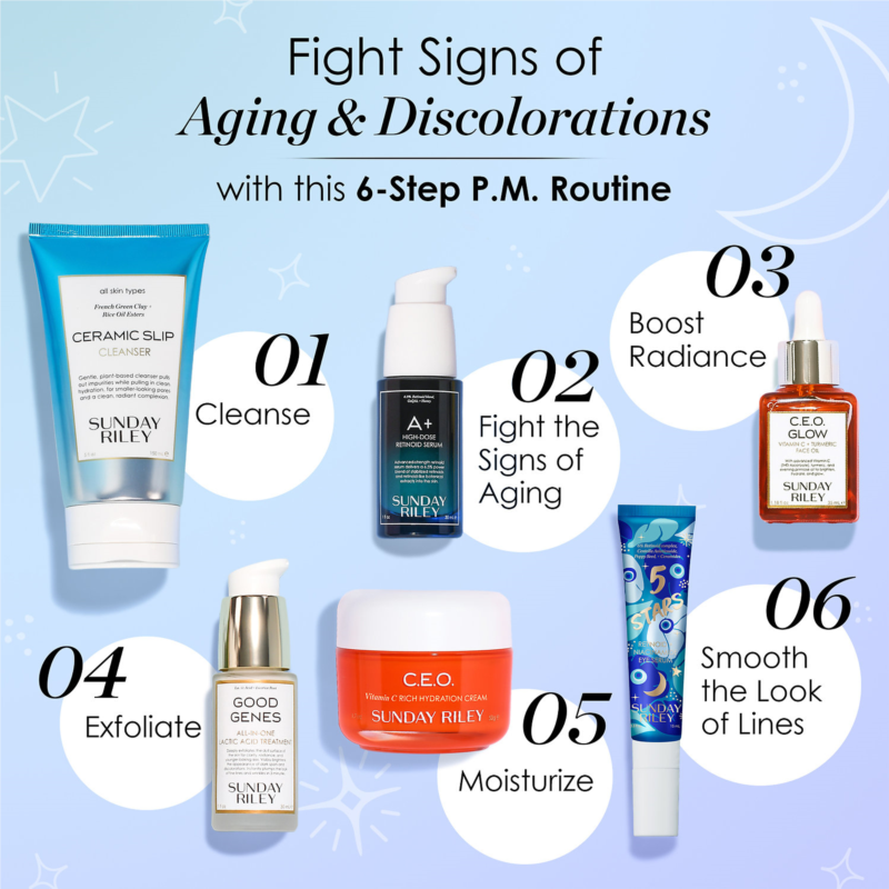 - Niacinamide: Brightens the look of discolorations and softens the look of wrinkles.